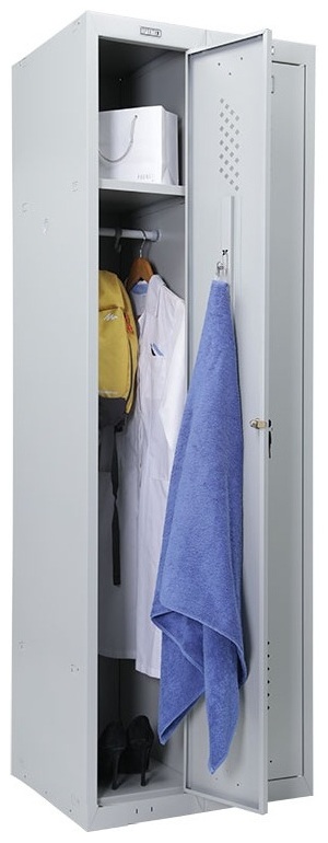 Продуманная вентиляция за счёт дополнительных отверстий в задней стенке на четырёх уровнях и возможность выбрать сторону открывания дверей помогают вписать шкафы в любую планировку. Локеры поставляются в разобранном виде для удобства транспортировки, а ключевой замок «Практик» на 2000 комбинаций обеспечивает надёжное запирание каждой секции.