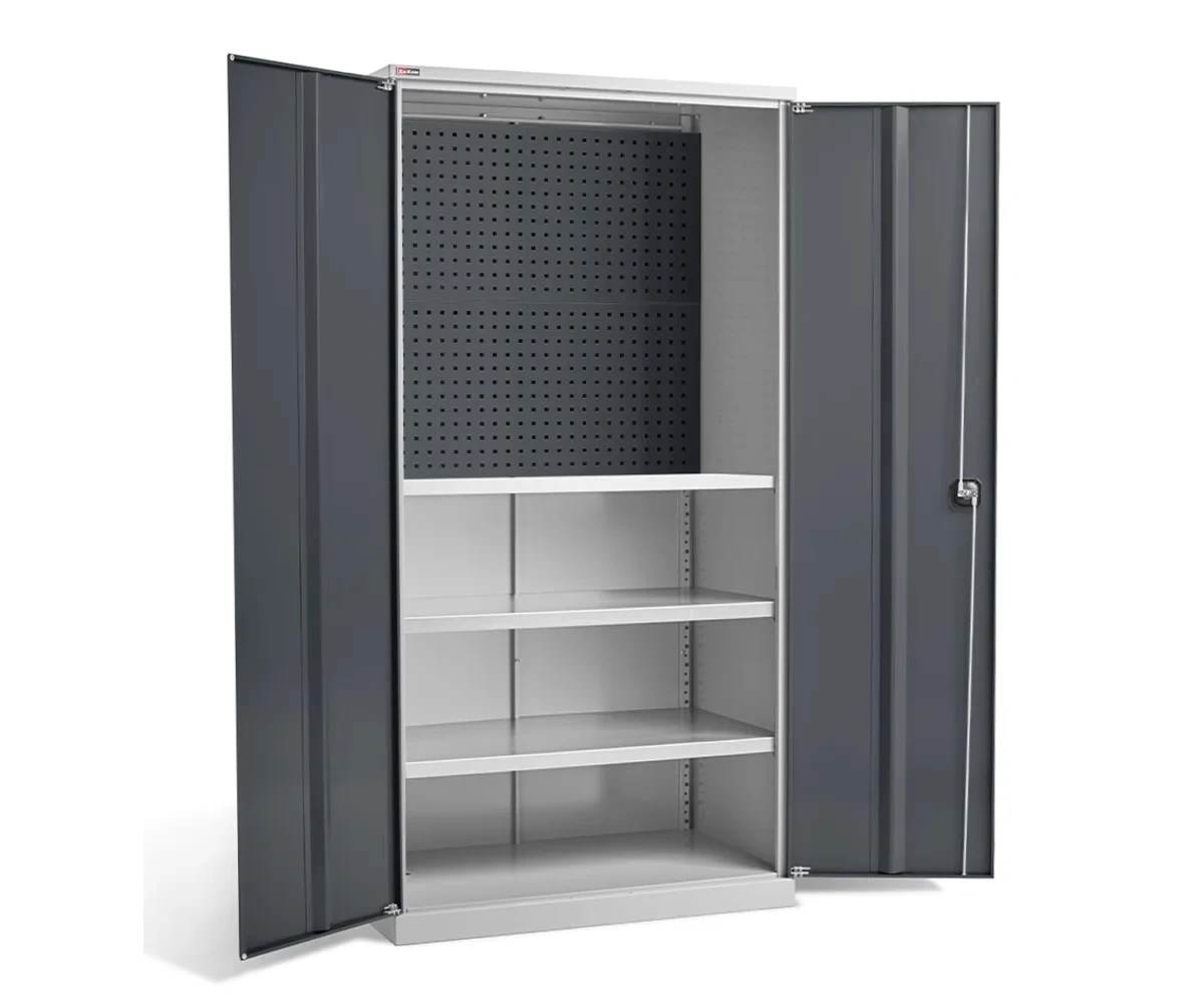 Инструментальные шкафы серии ВЛ выполняют важную задачу – унифицировать и систематизировать хранение инструментов, материалов и деталей, что повышает эргономичность рабочего процесса и создаёт в мастерской деловую атмосферу основательности, порядка и комфорта.Средне-тяжёлая линия инструментальных шкафов ВЛ опирается на три основных принципа: модульность, объём, надёжность. Пространство шкафа весьма вместительно и полностью заполняется полками, перфорированными экранами для держателей и ящиками, пластиковыми и металлическими (их размеры и расположение вариабельны – всё определяет вопрос удобства и специфики работ).